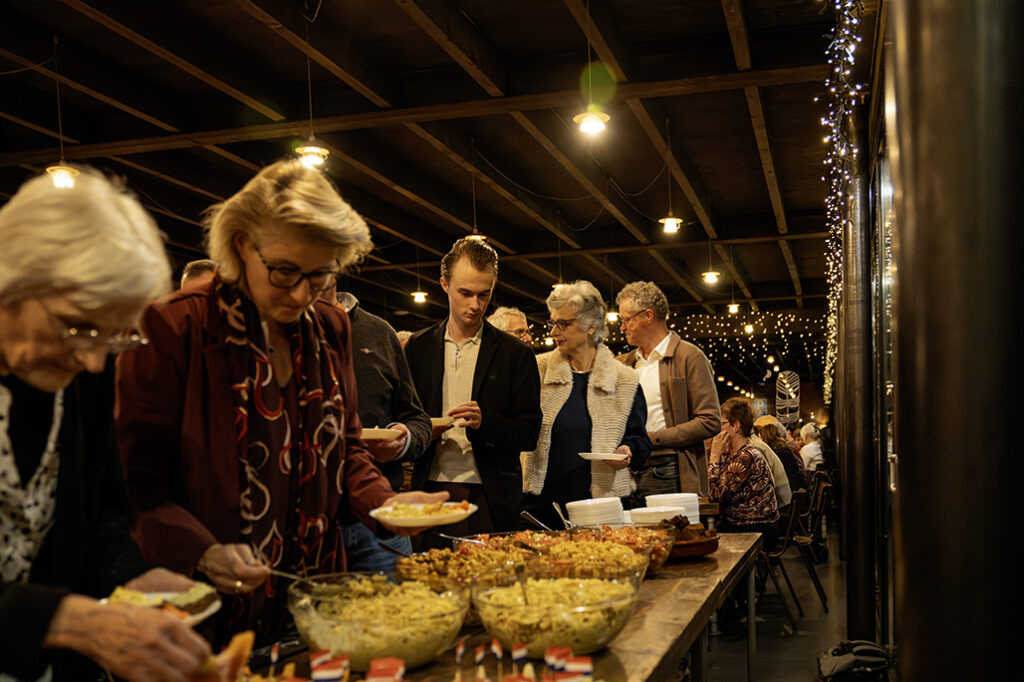 In de sfeervol versierde Perdstal kwamen ruim 100p bijeen voor een gezellig samen zijn, een goed verzorgd en smakelijk buffet, een swingende muziekquiz en om gezellig met elkaar te kunnen bijpraten.