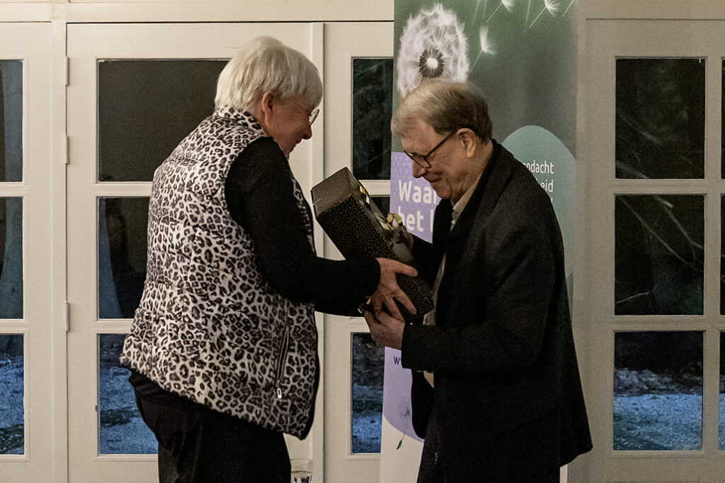 Op vrijdag 24 oktober vond in het sfeervolle Theehuis in het Odapark te Venray opnieuw een herdenkingsbijeenkomst plaats. Nabestaanden kwamen samen om gezamenlijk hun dierbaren te gedenken. Voorafgaand aan de herdenking kregen de aanwezigen de gelegenheid om een foto van hun geliefde op de gedenktafel te plaatsen en daarbij een kaars te ontsteken. Tijdens de bijeenkomst werden gedichten, anekdotes, herinneringen en woorden van dank gedeeld door nabestaanden. Muziek mocht op deze avond natuurlijk niet ontbreken. Naast de muzikale omlijsting door Mirjam Aarts, zong Mees een lied voor zijn opa — een bijzonder moment dat bijdroeg aan de liefdevolle sfeer van het samenzijn. Na afloop van de herdenking was er ruimte voor nabestaanden, vrijwilligers en verzorgenden om samen te zijn en na te praten. Het is onze ervaring dat bijeenkomsten als deze een troostende werking hebben.