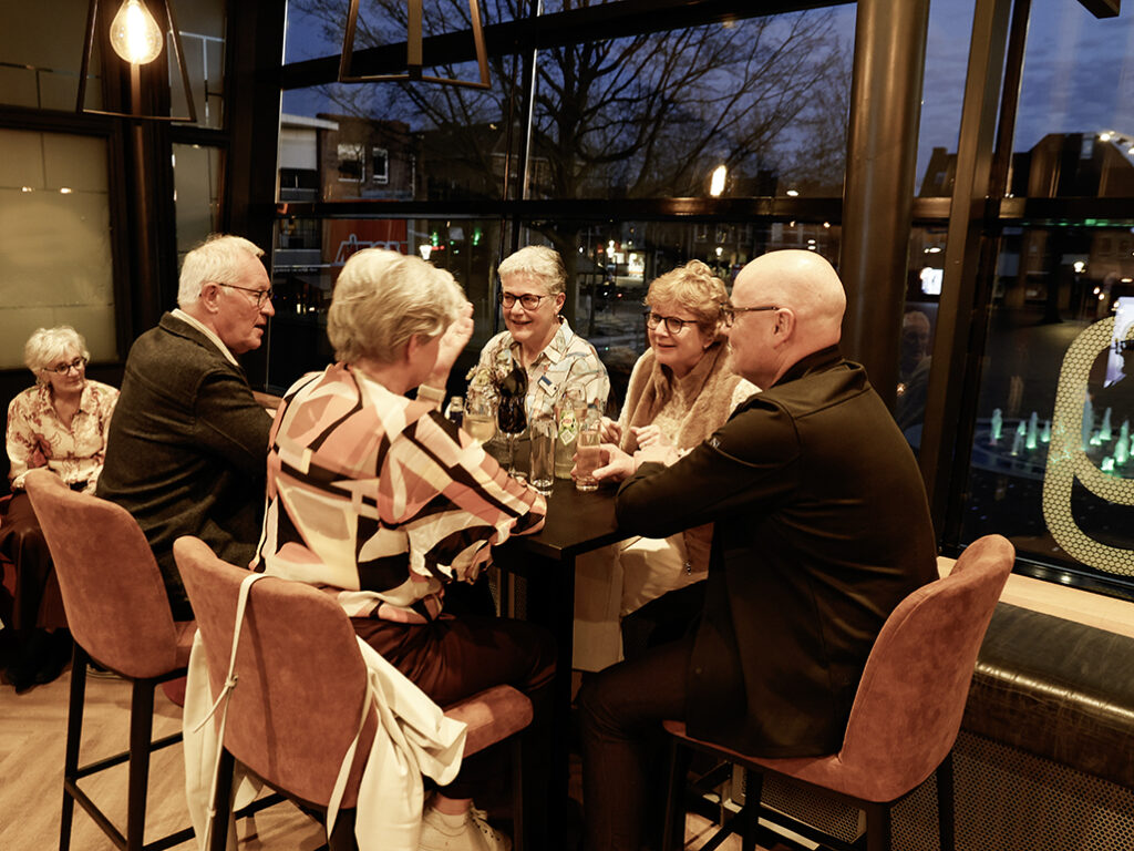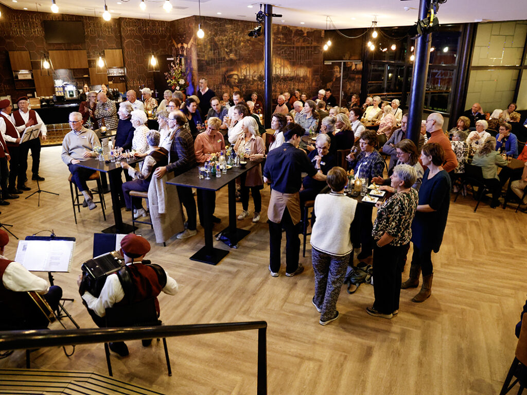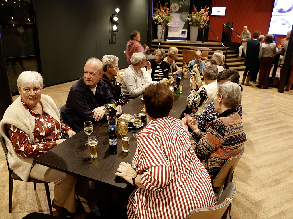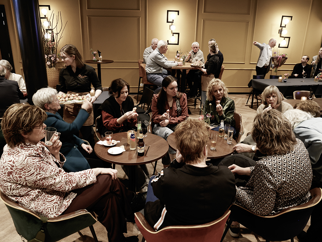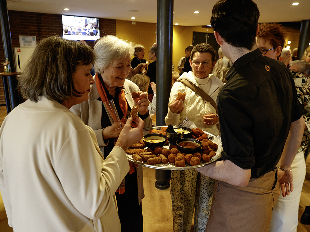 Een gezellige middag met een voorstelling, gevolgd door een borrel en een hapje.